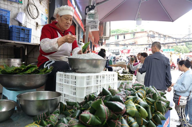 端午前期,貴陽市云巖區(qū)文筆街各色粽子熱銷,傳統(tǒng)粽子和創(chuàng)新口味的粽子受到消費(fèi)者追捧。