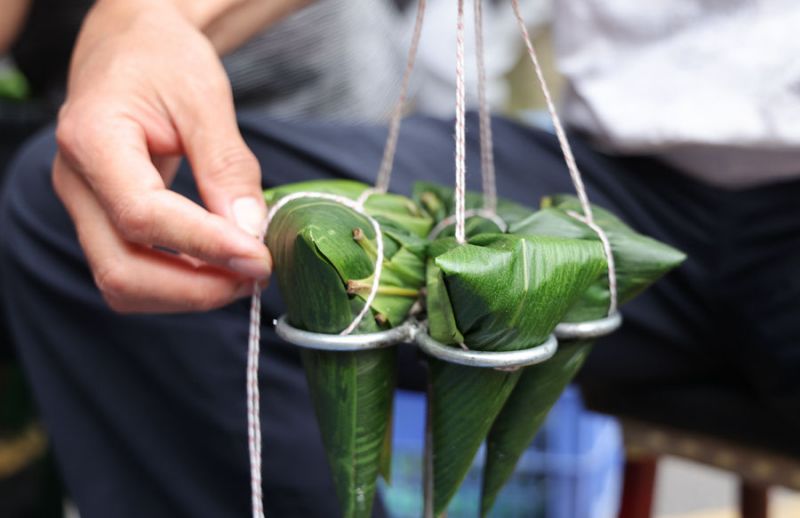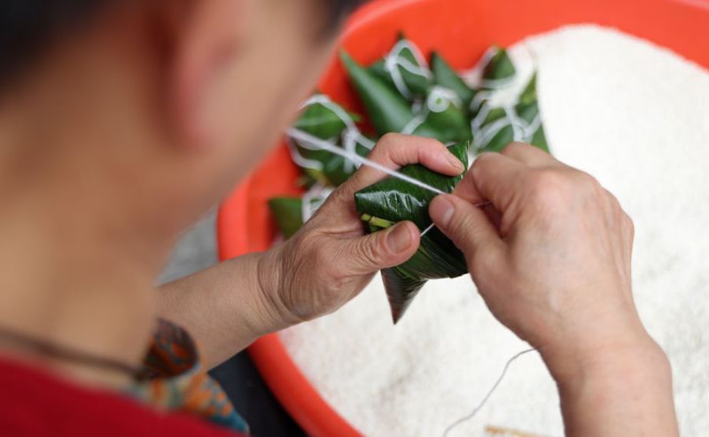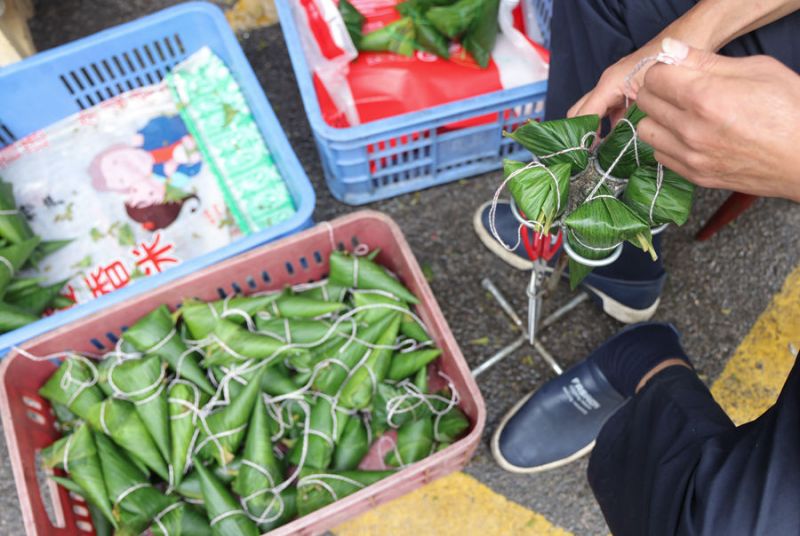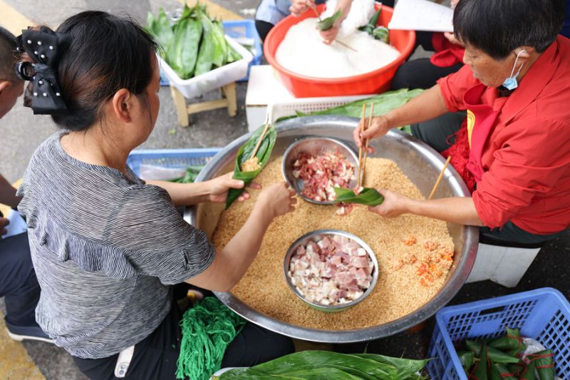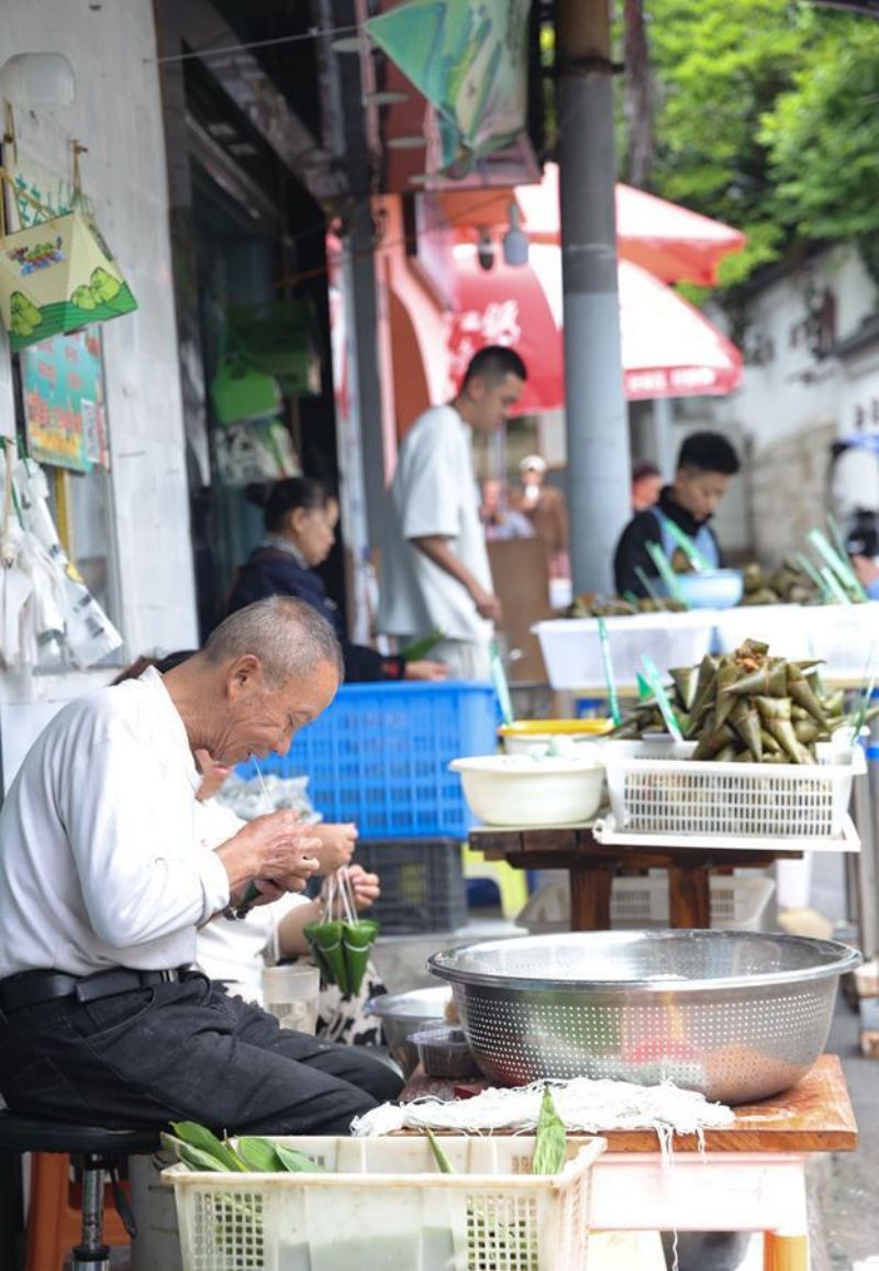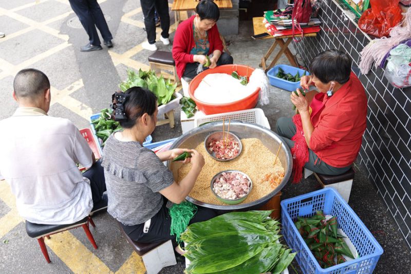 6月4日,在貴陽市云巖區(qū)文筆街商戶在包粽子。(張暉 攝)