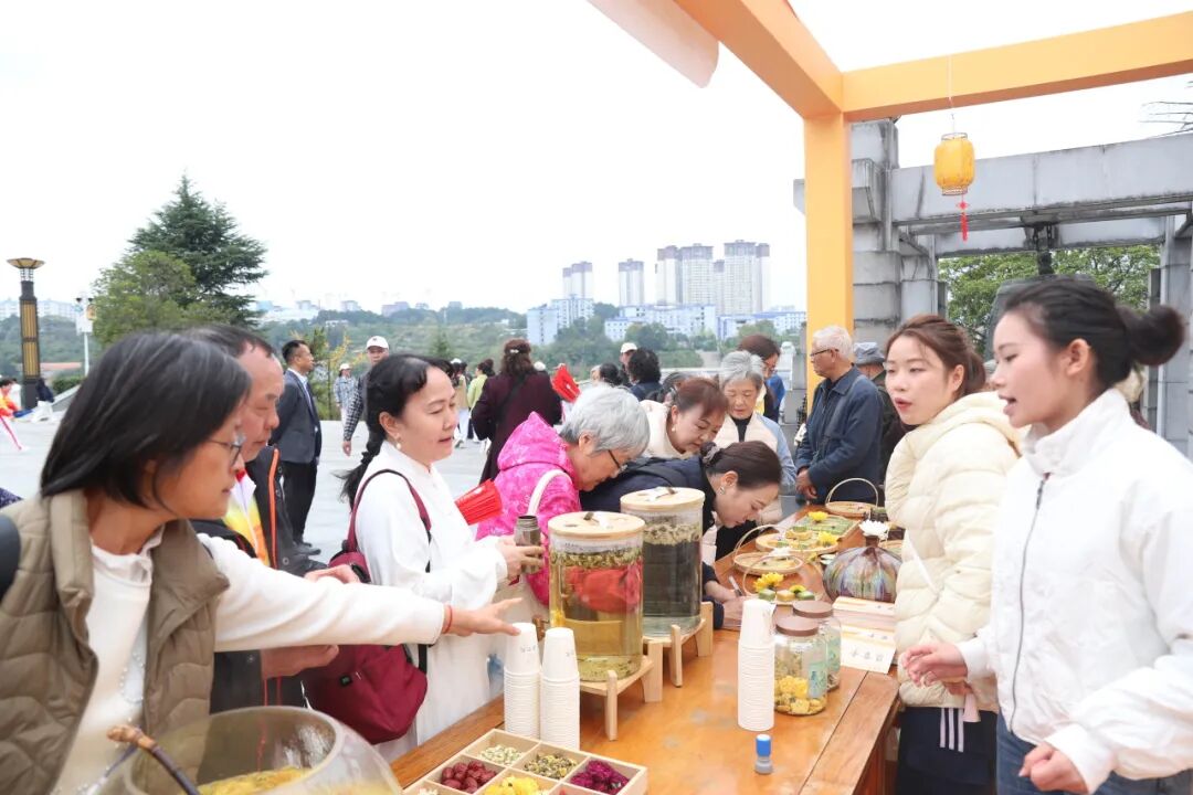 “樂(lè)養(yǎng)合家歡”文化體驗(yàn)區(qū)同樣精彩。六大體驗(yàn)項(xiàng)目各具特色:“艾護(hù)安康”讓大家制作養(yǎng)生艾草錘;“茶養(yǎng)身心”配制中藥茶包,讓大家體驗(yàn)茶養(yǎng)之道;“鏡藏時(shí)光”設(shè)置懷舊場(chǎng)景,提供即拍即傳服務(wù),為家庭記錄幸福瞬間;“紙隨心轉(zhuǎn)”教剪頌揚(yáng)美好家庭風(fēng)氣的剪紙作品;“品茗菊韻”現(xiàn)場(chǎng)可以品鑒菊花茶;“杏壇登高”則供市民登高祈福,寓意步步高。參與者持集章卡完成打卡,即可兌換紀(jì)念禮品,收獲滿滿回憶與歡樂(lè)。